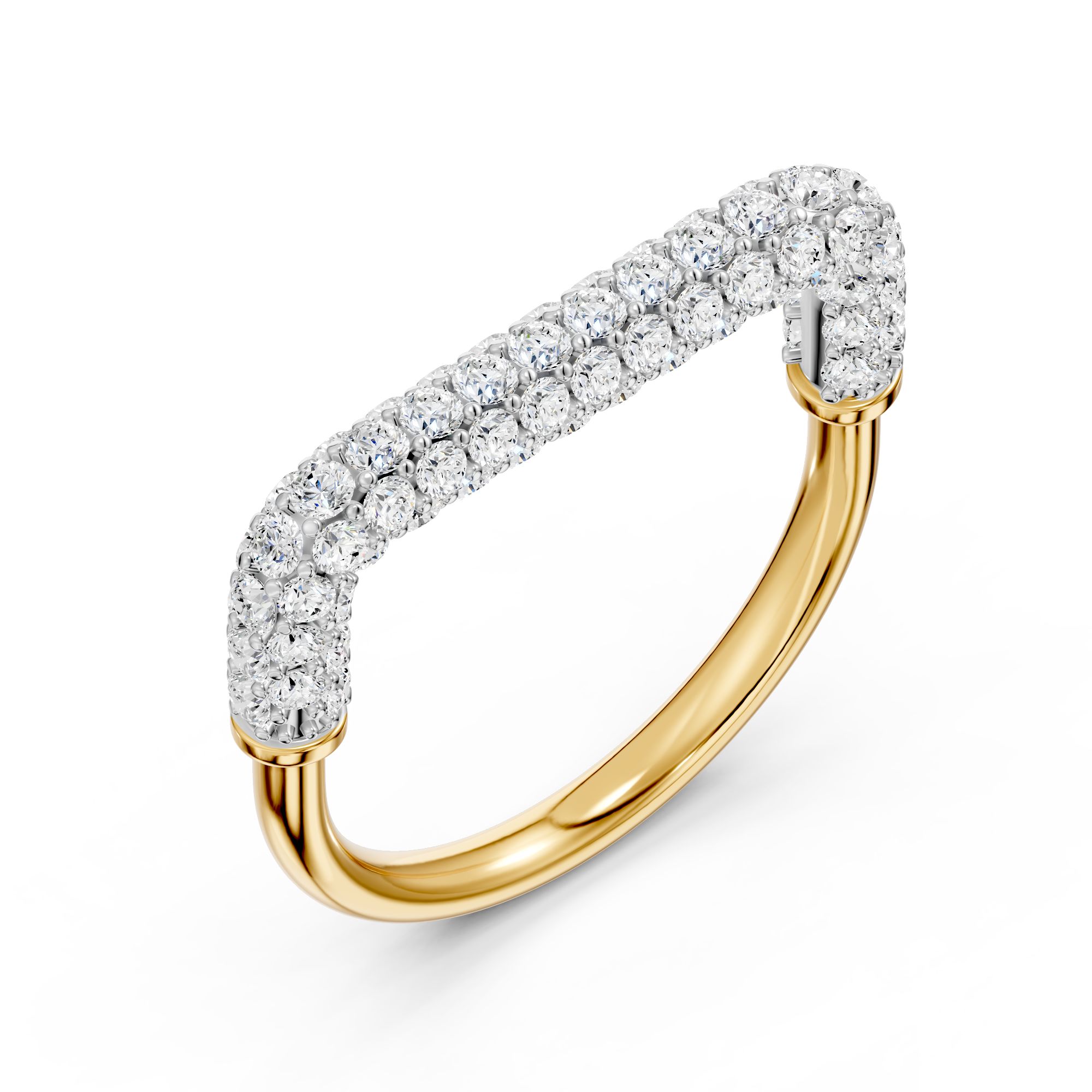 A row of sparkling diamonds flow across this graceful 14kt/18kt gold ring, forming a cascading effect that exudes both softness and luxury. Perfect for cocktail evenings or festive wear.