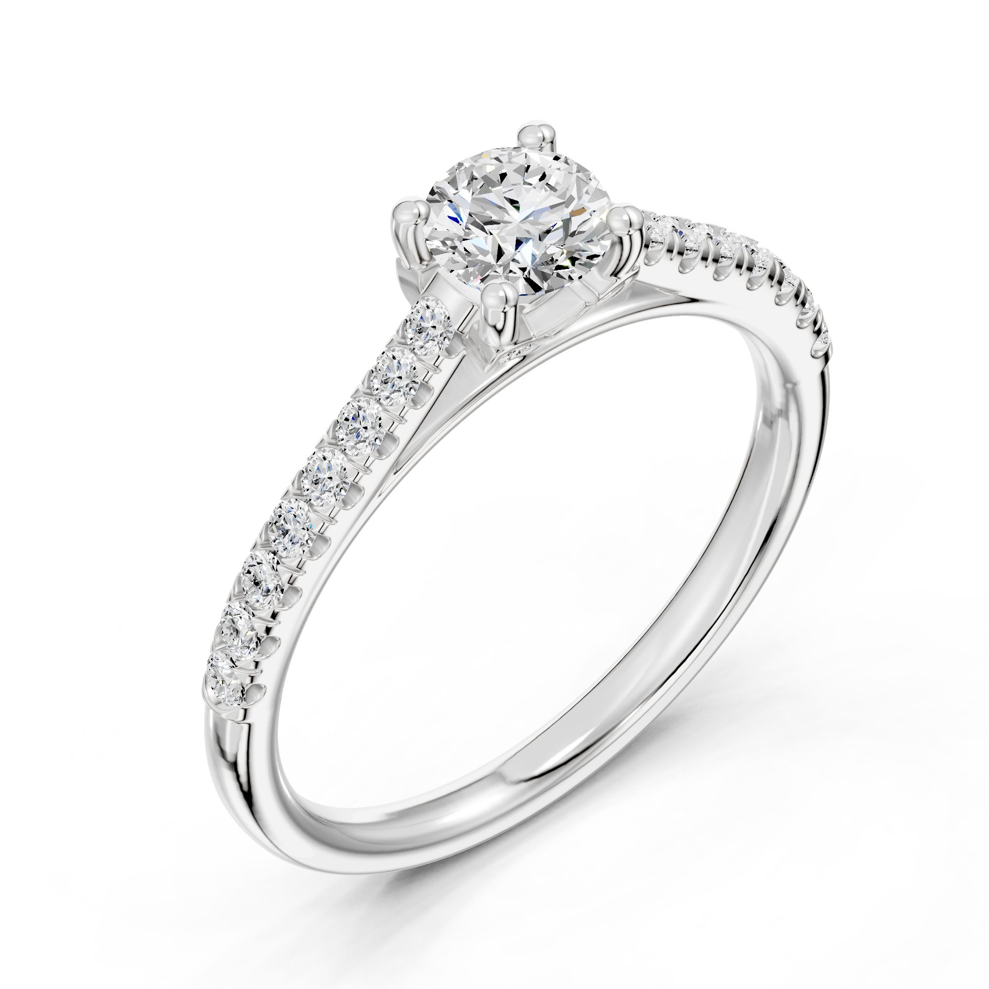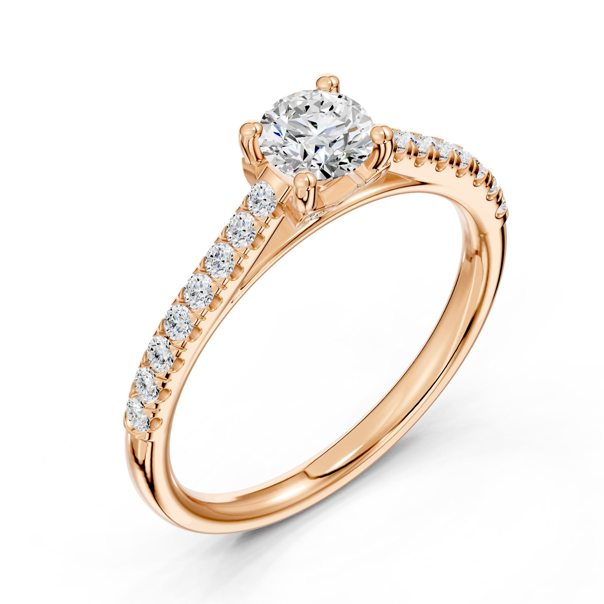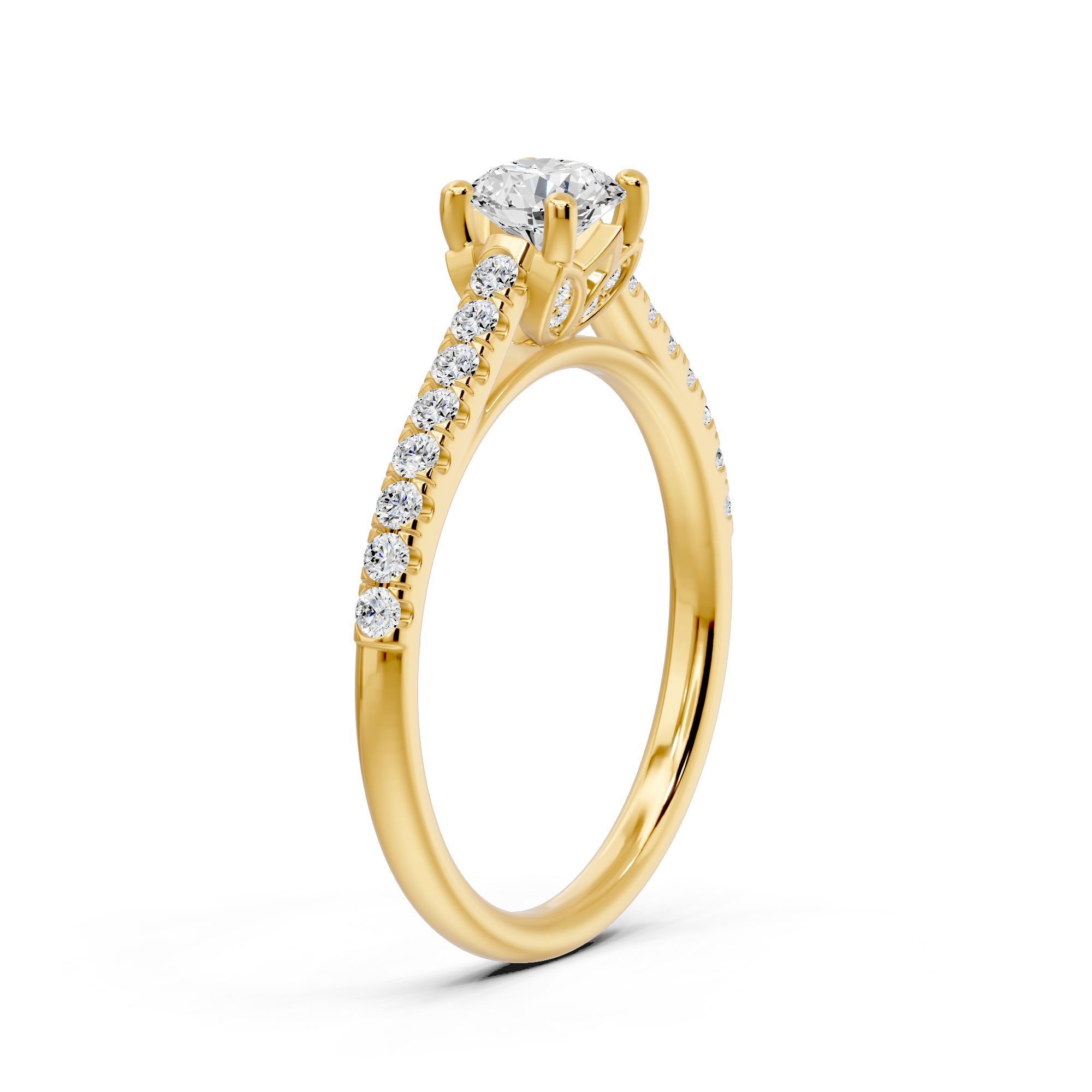 Crafted in gold, this elegant engagement ring features a striking round-cut diamond at its center, accented with shimmering side stones. A timeless design that blends modern sophistication with classic brilliance.