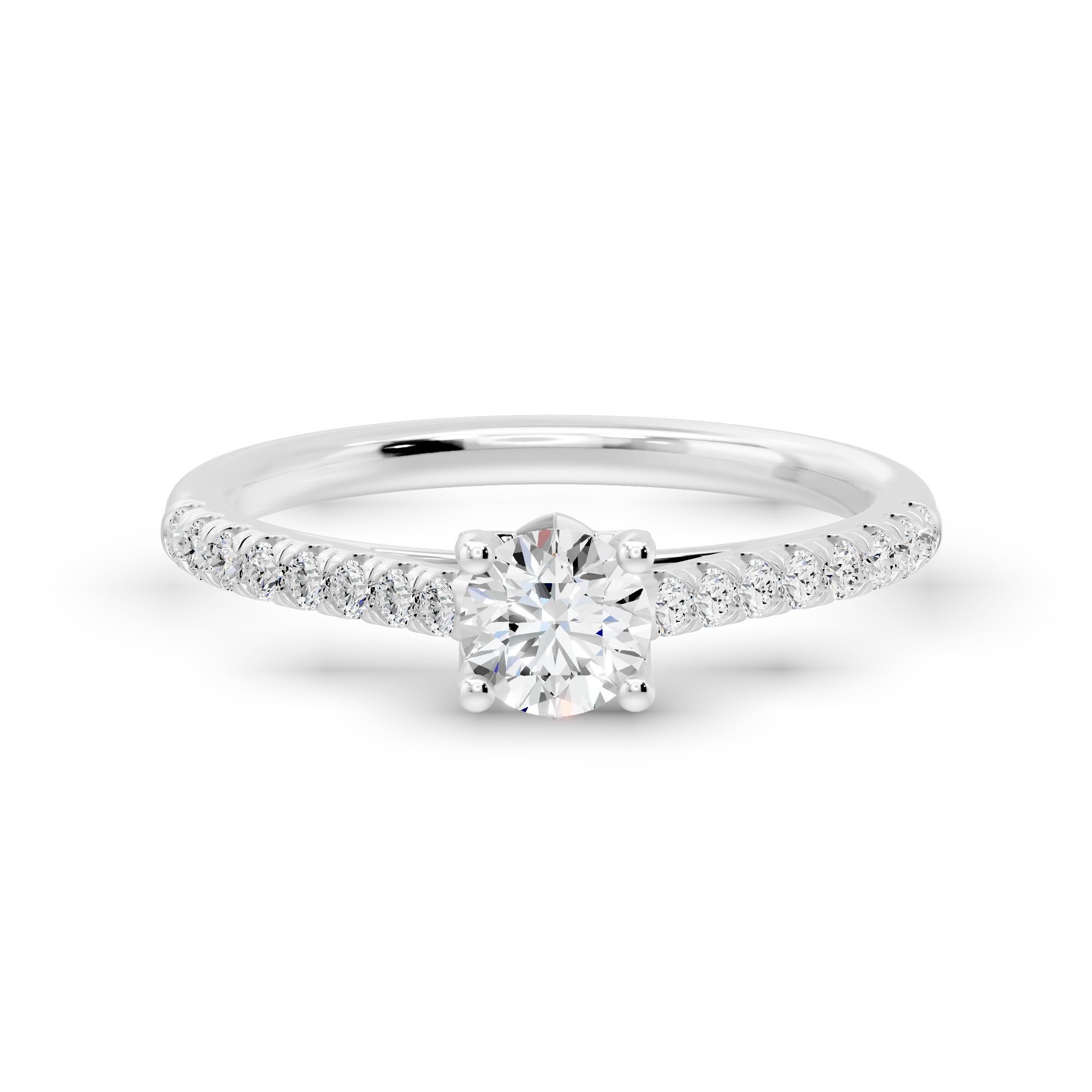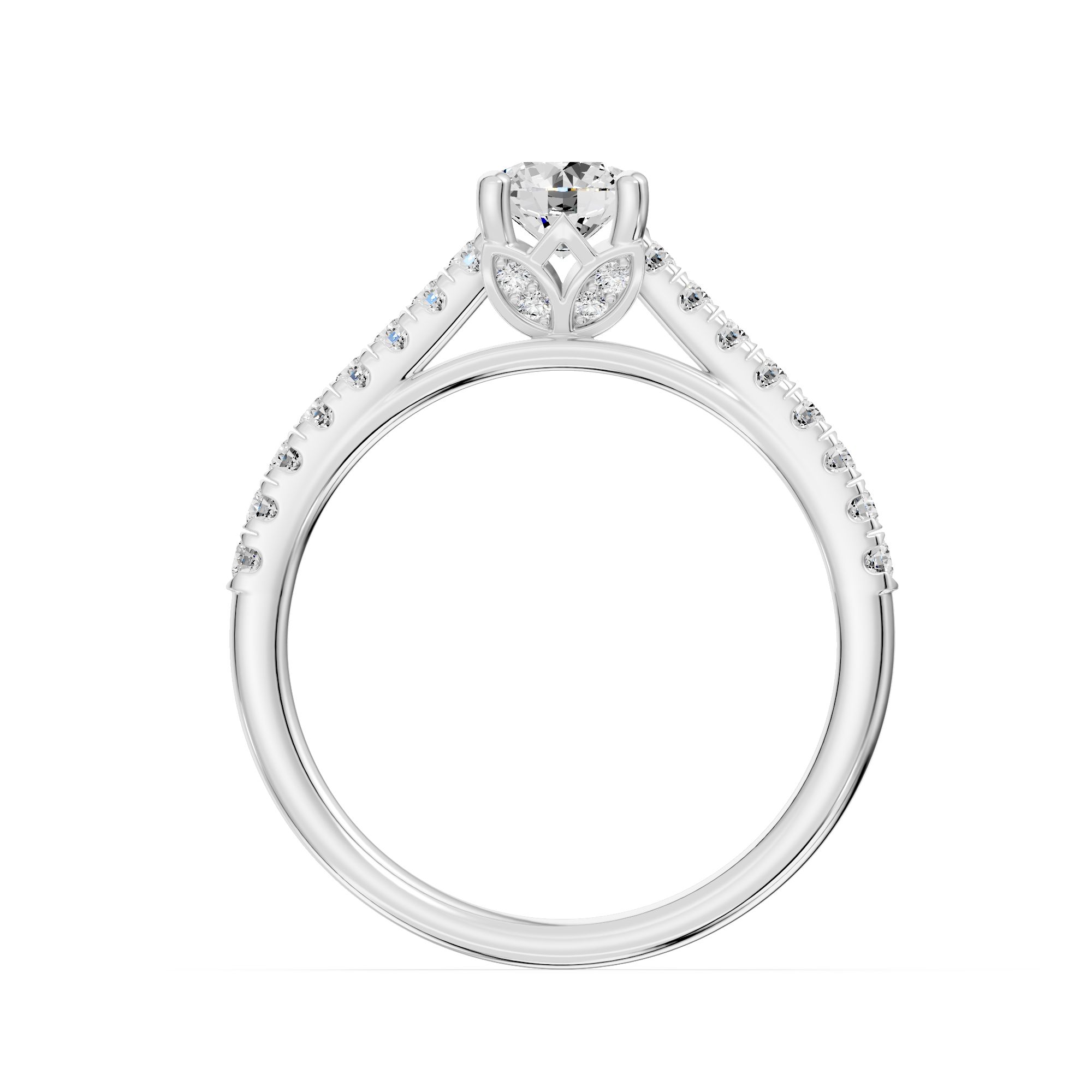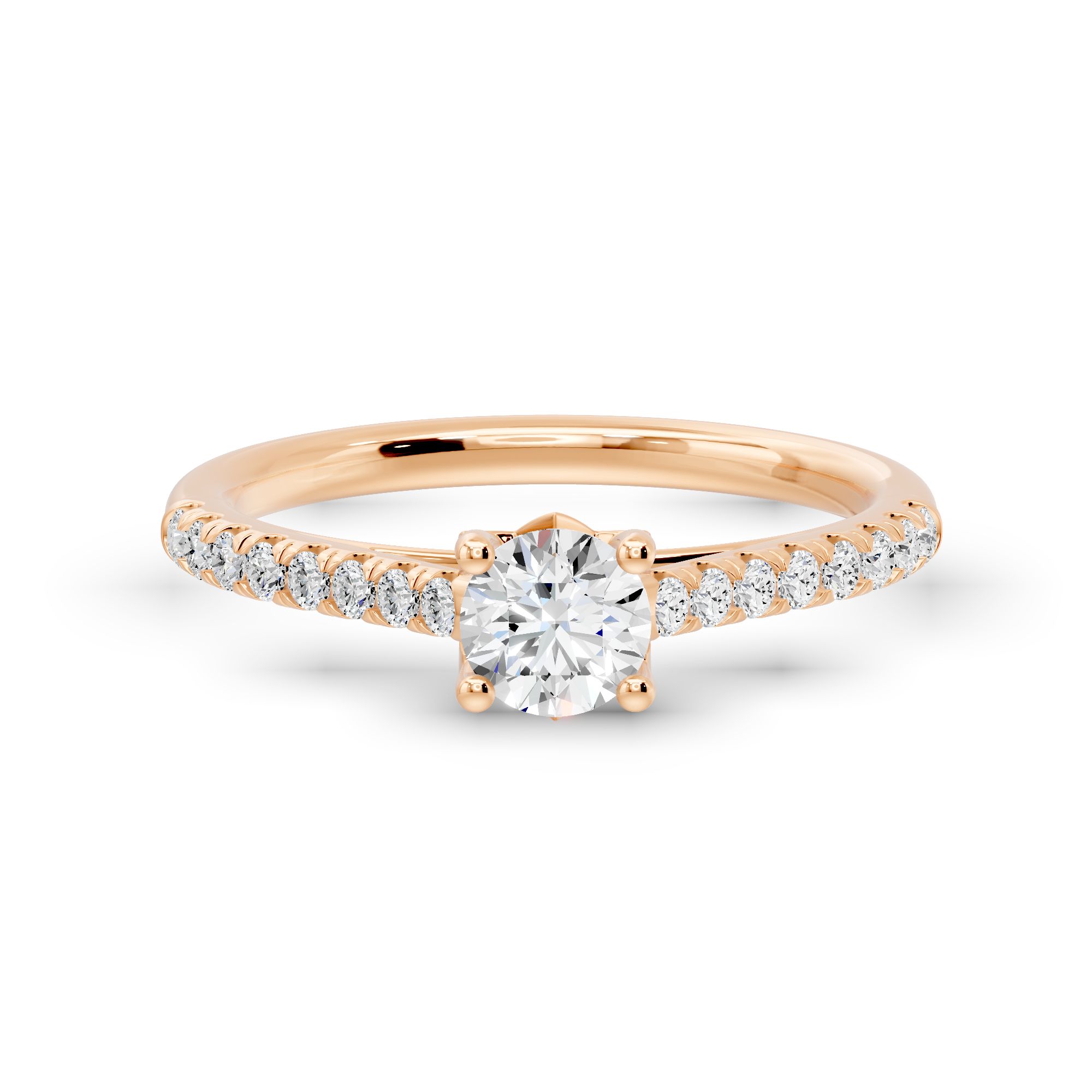 Crafted in gold, this elegant engagement ring features a striking round-cut diamond at its center, accented with shimmering side stones. A timeless design that blends modern sophistication with classic brilliance.