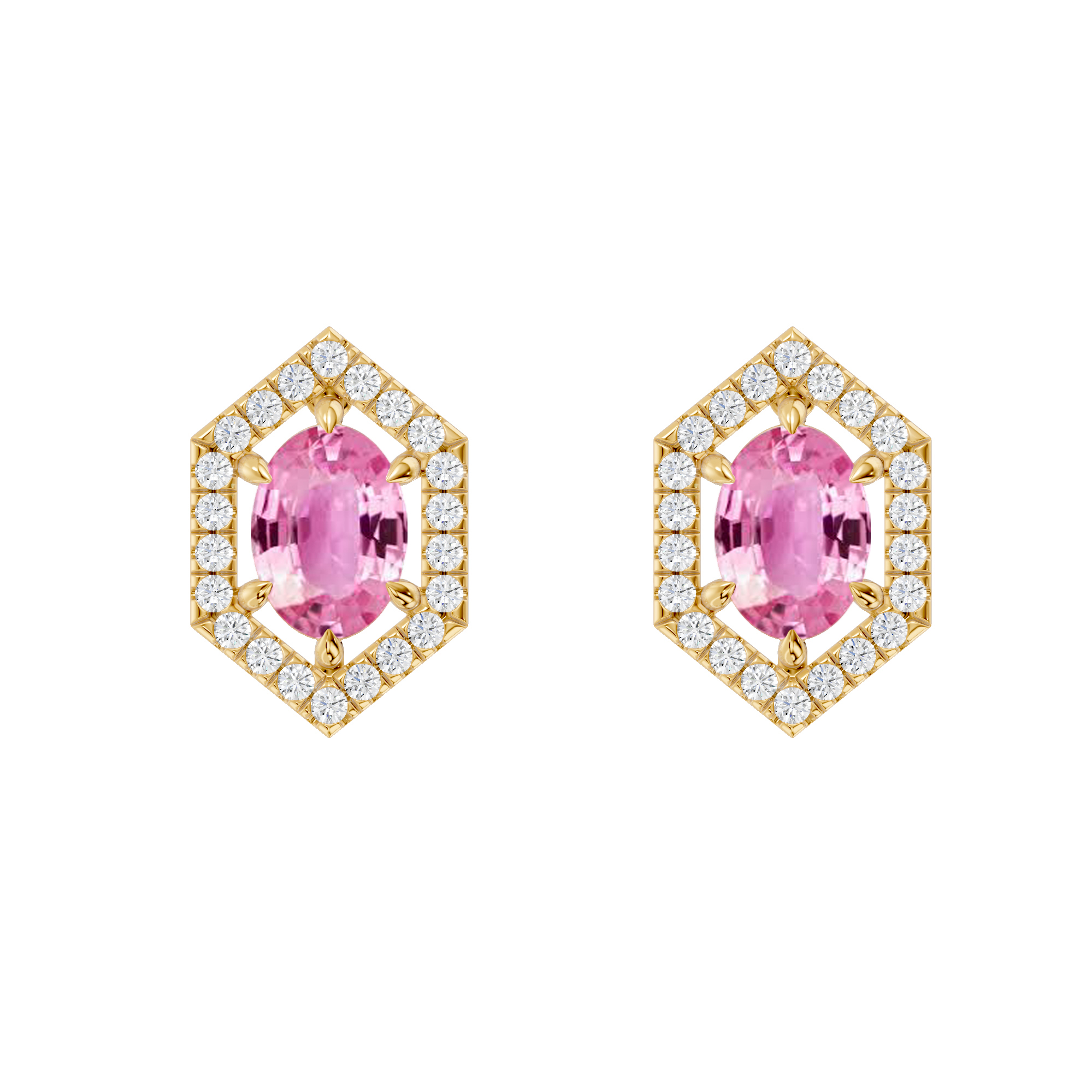 Elegant earrings featuring a radiant center stone—available in ruby, pink sapphire, amethyst, or green emerald—set against shimmering white diamonds for a vibrant yet graceful finish.
