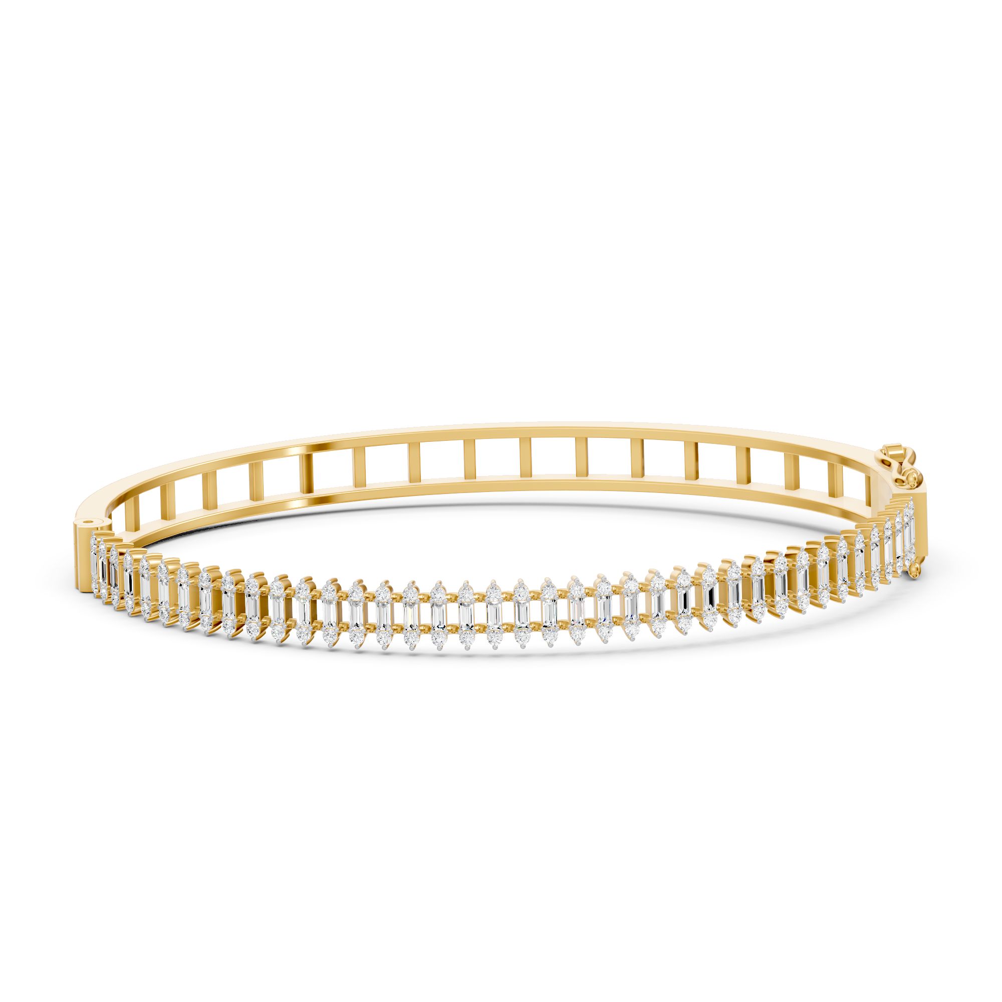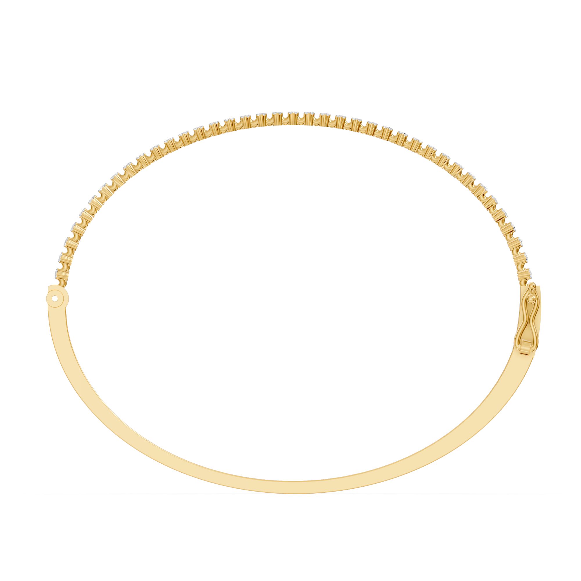 A streamlined row of diamonds set into 14/18kt gold gives this bangle a graceful, linear look. Perfect for adding a hint of sparkle to any ensemble.