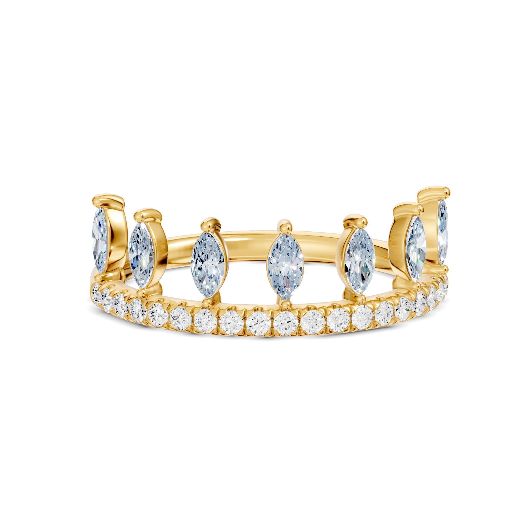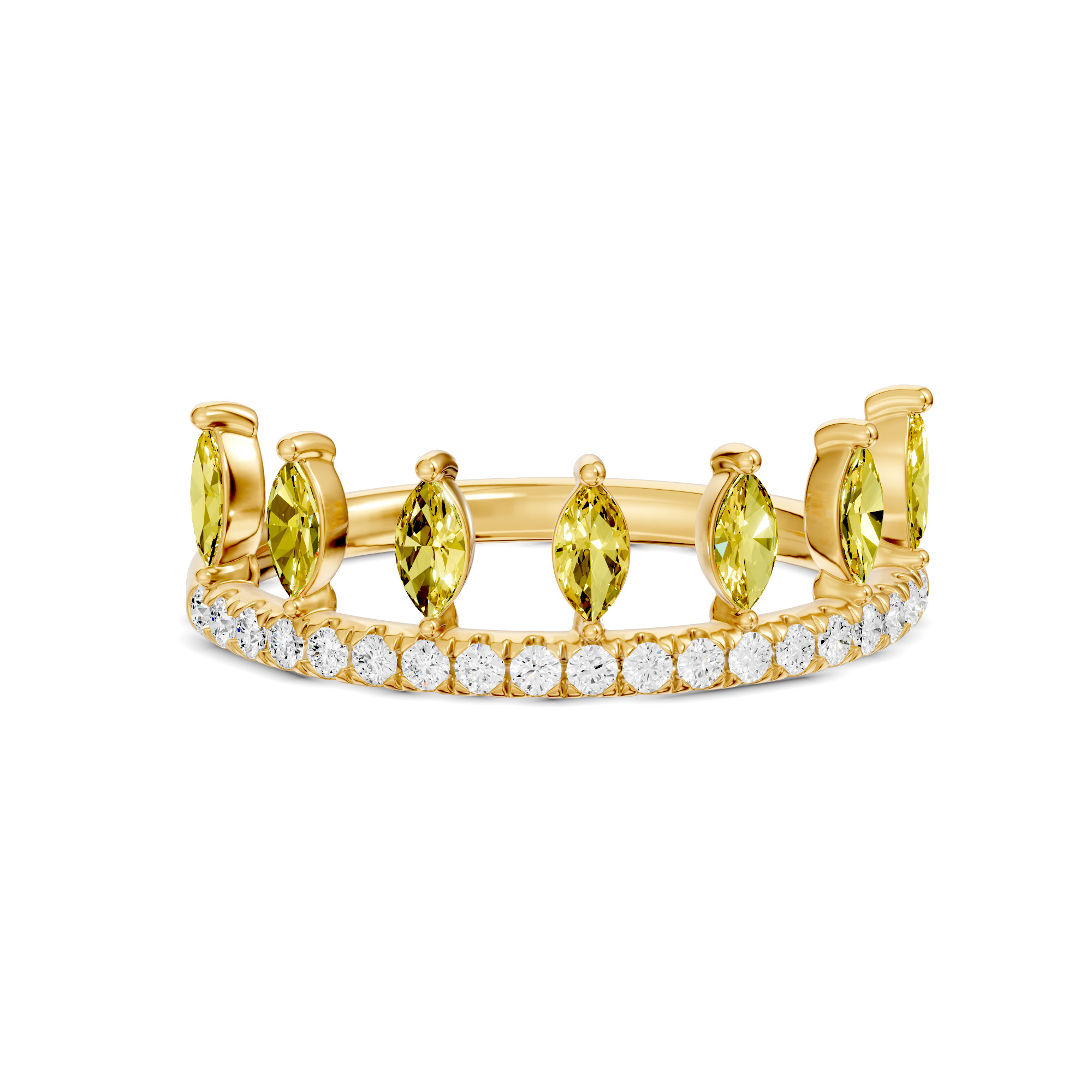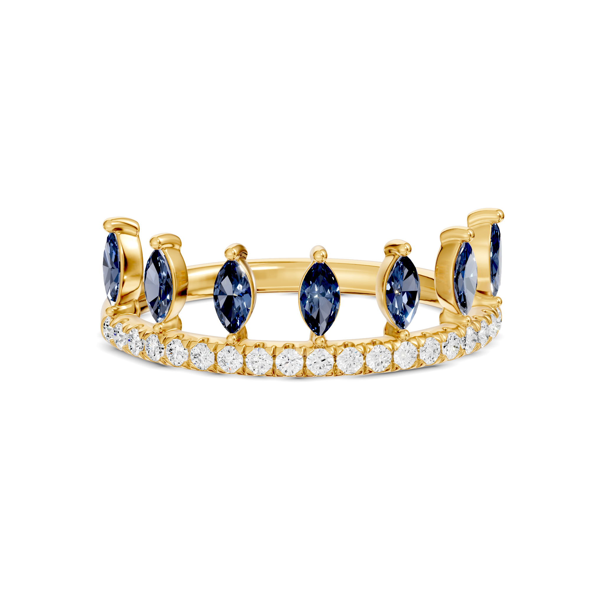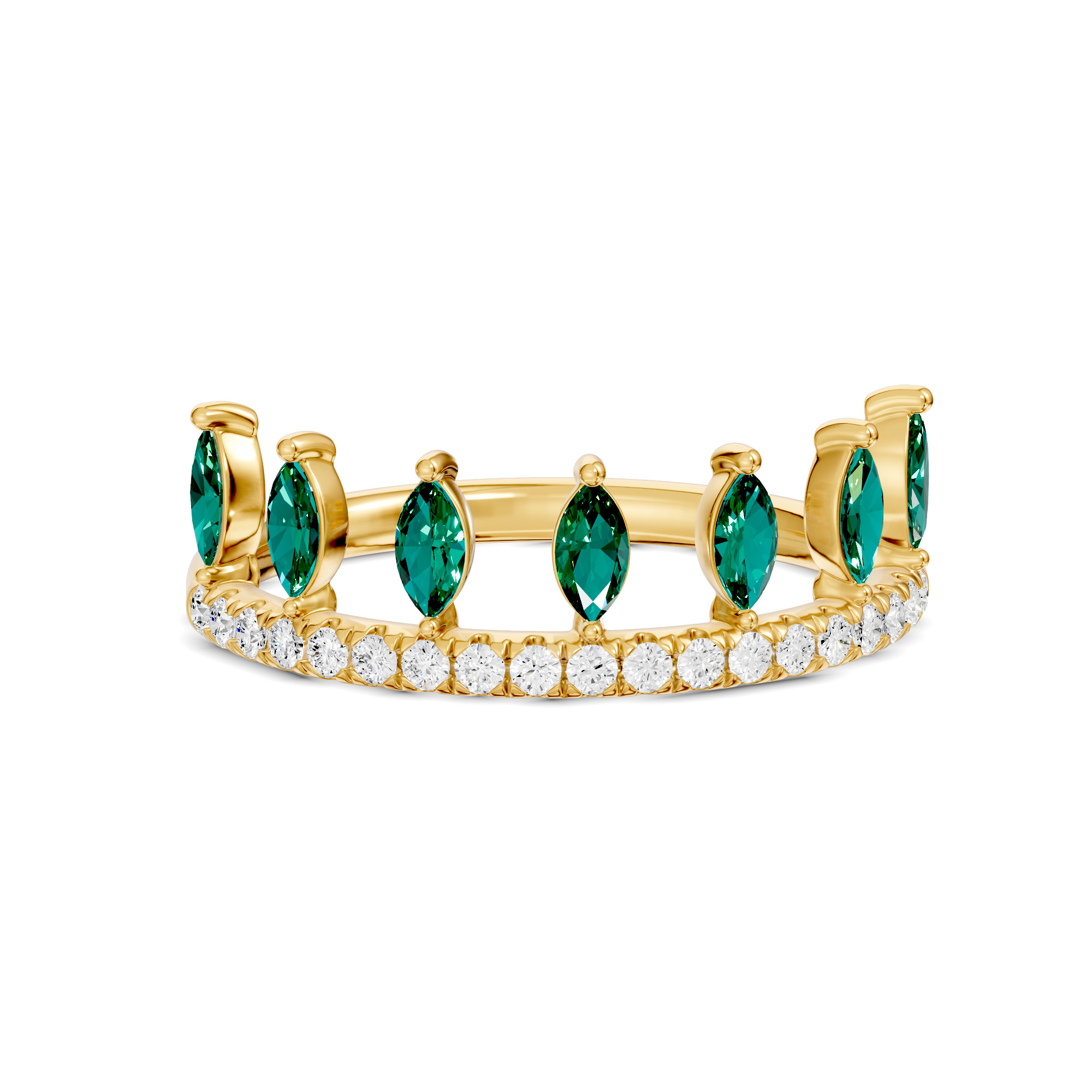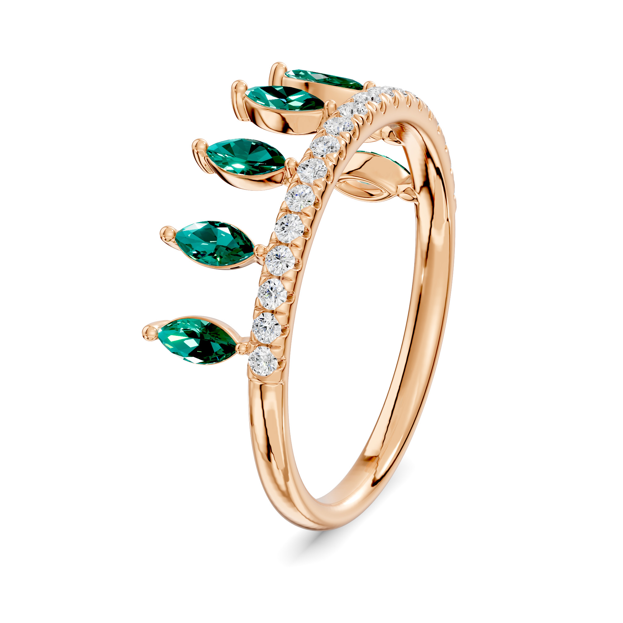 This elegant Maliha ring features series of marquise shape stones styled like a leaf, accented by line of shimmering round diamonds. Looks elegant when two bands stacked together . Available in vibrant gemstone options of Emerald, Ruby, Aquamarine, Blue Sapphire, Citrine, Pink Sapphire. It offers a graceful, everyday charm perfect for gifting or personal wear.   Product Code: RF0005R12DM