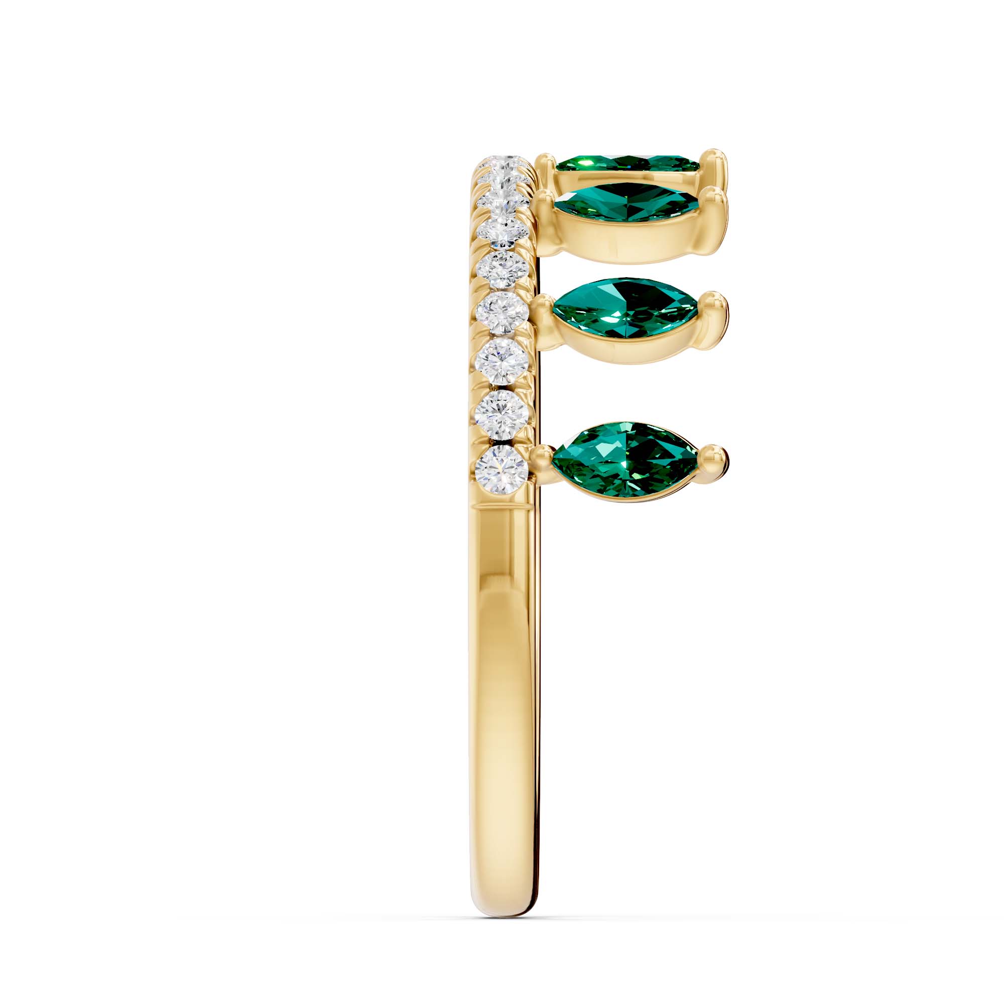 This elegant Maliha ring features series of marquise shape stones styled like a leaf, accented by line of shimmering round diamonds. Looks elegant when two bands stacked together . Available in vibrant gemstone options of Emerald, Ruby, Aquamarine, Blue Sapphire, Citrine, Pink Sapphire. It offers a graceful, everyday charm perfect for gifting or personal wear.