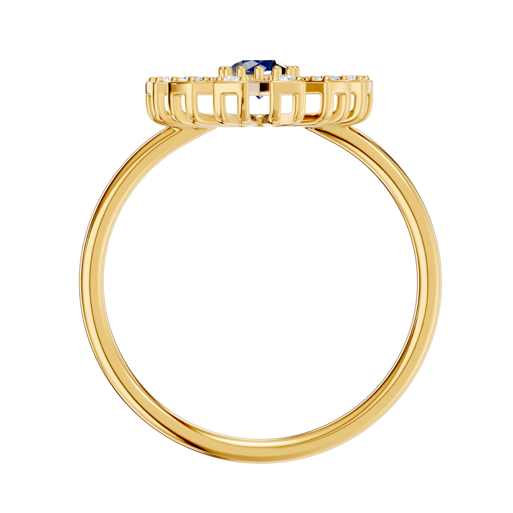 A captivating blend of colour and brilliance, the Royal Radiance Pendant features a striking centre gemstone—available in blue sapphire, emerald, or ruby The top view reveals a subtle golden reflection, adding a warm glow to its regal charm. Perfect to pair with the royal radiance pendant