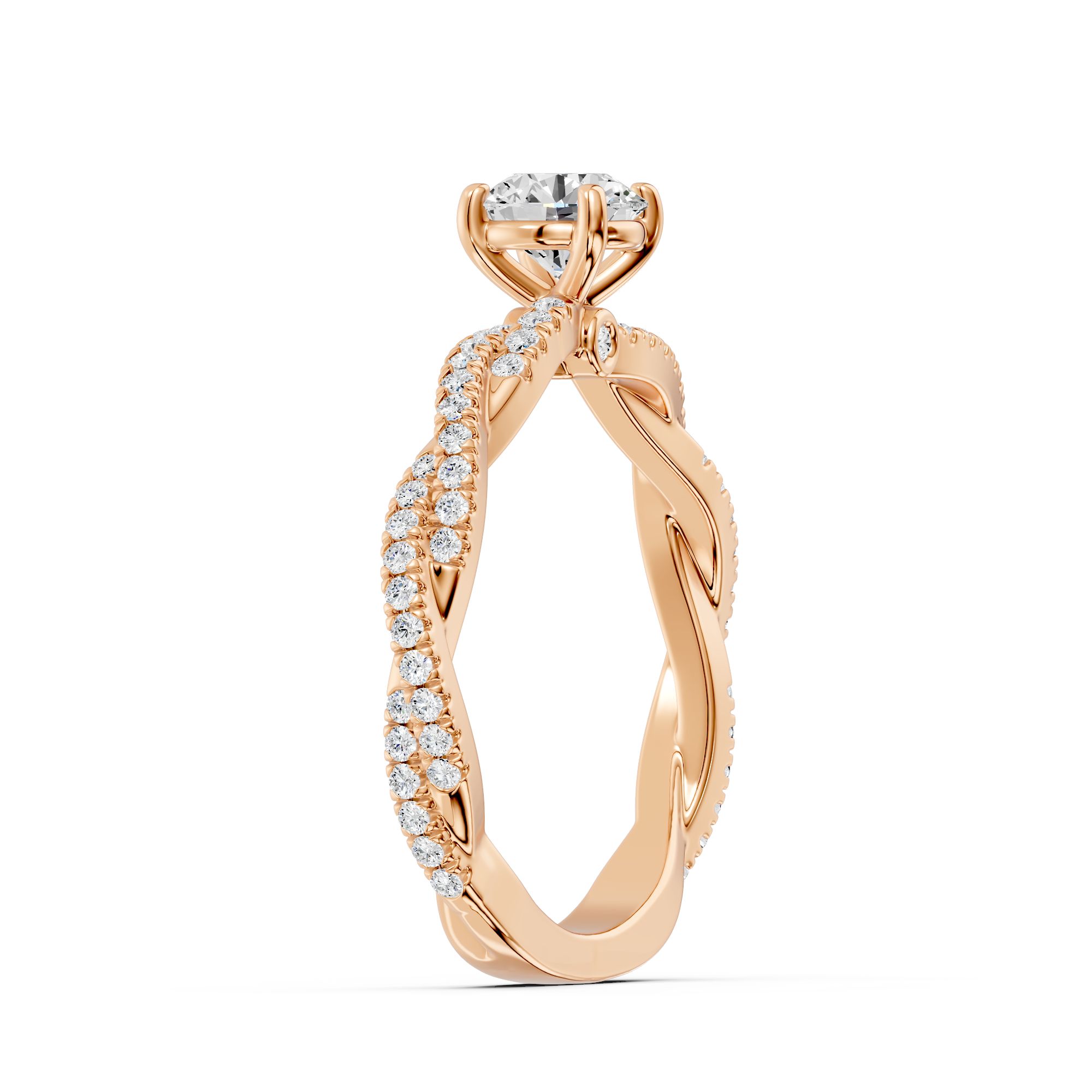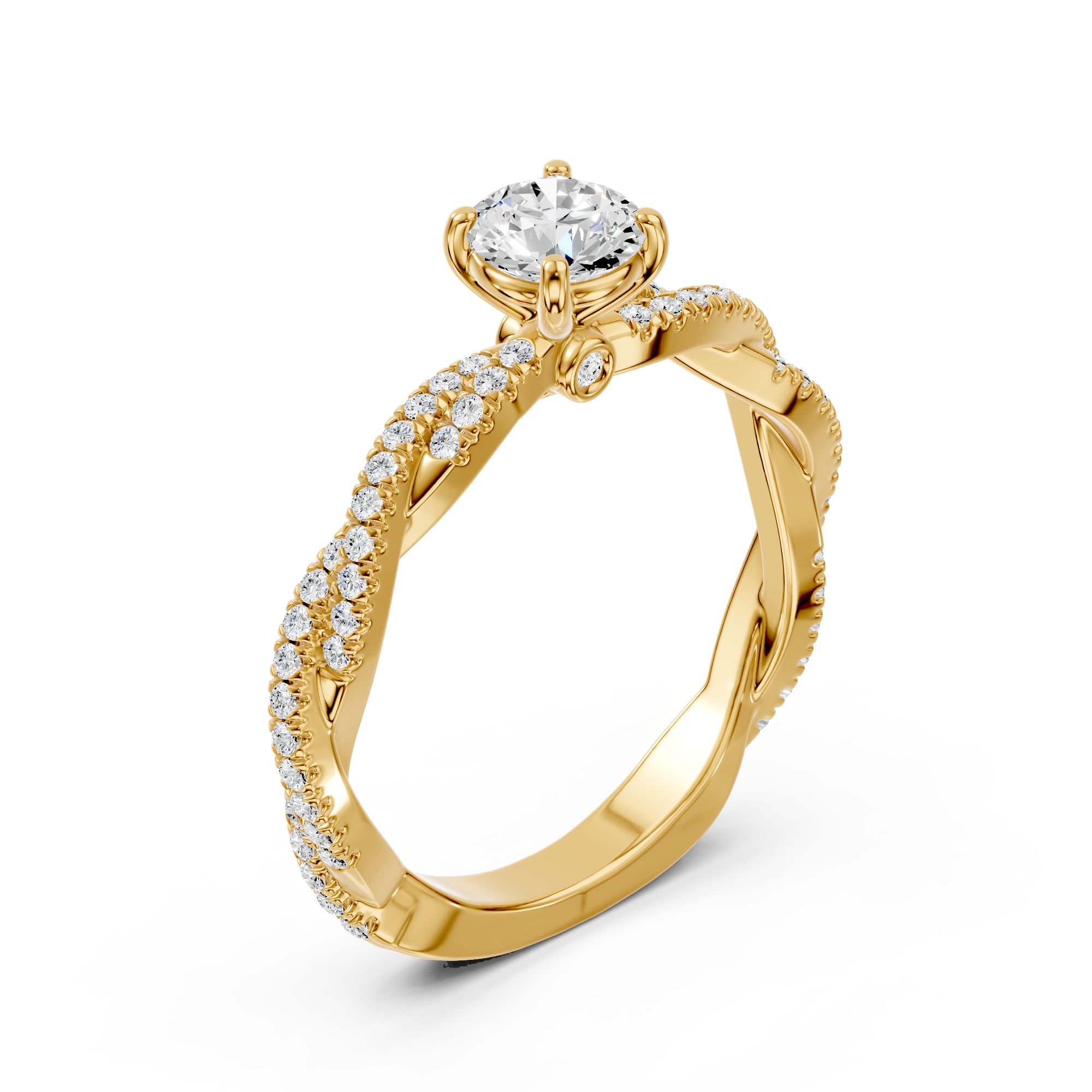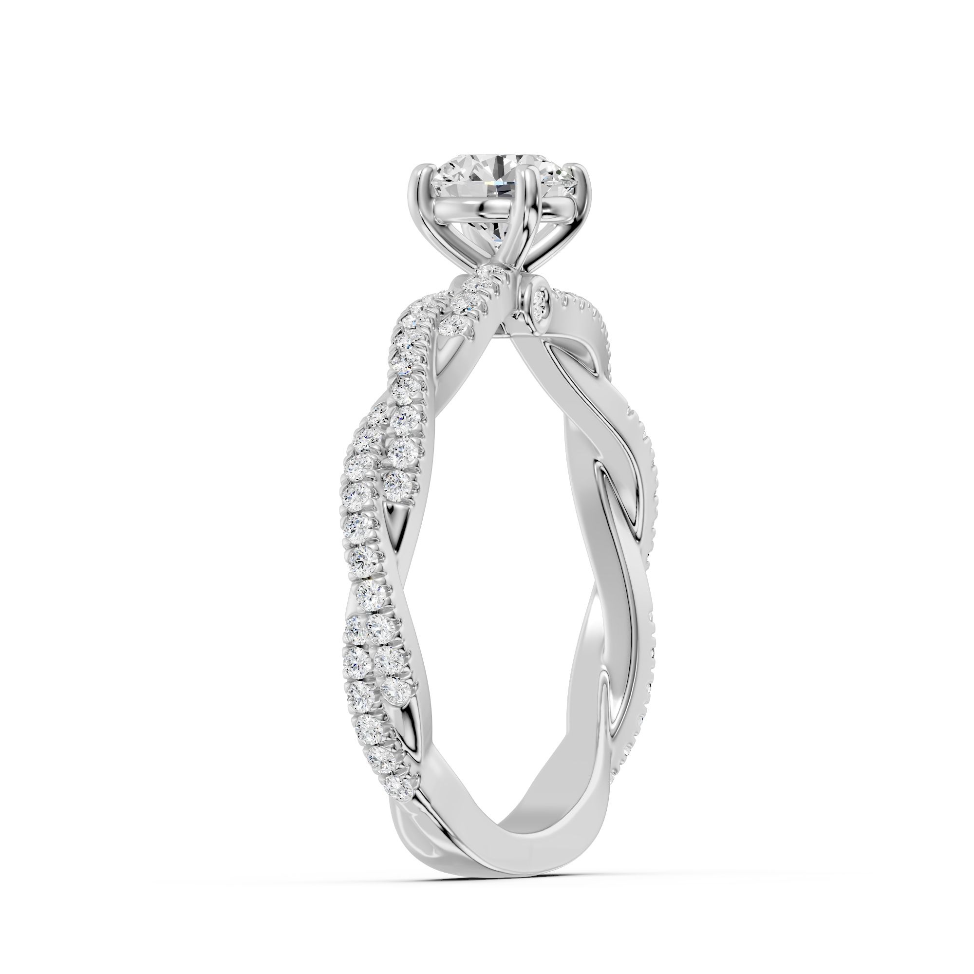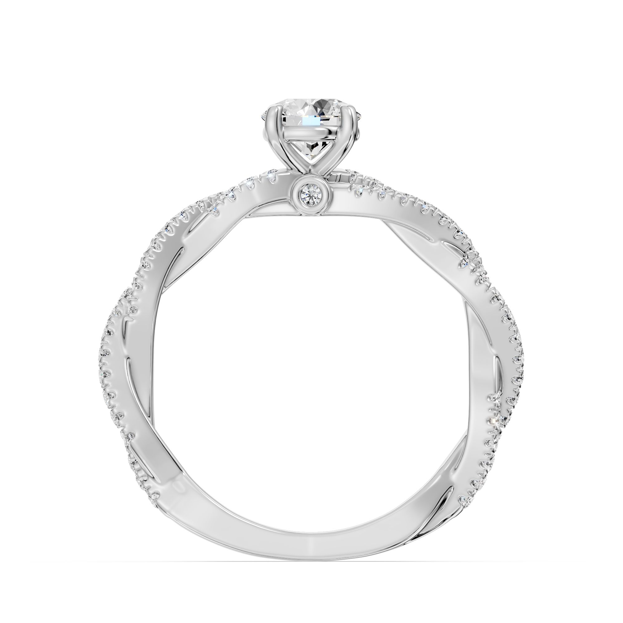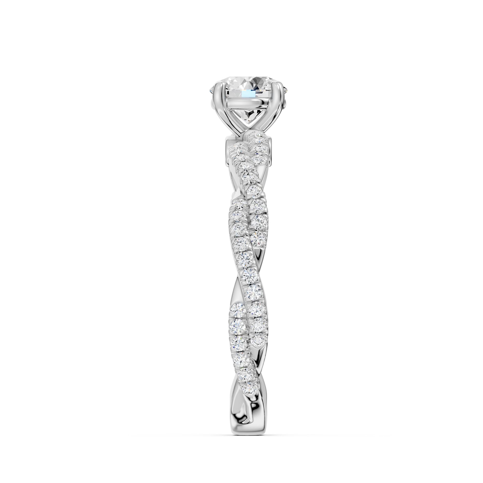 The Solitaire Swirl Ring features a dazzling round-cut diamond at its centre, embraced by a graceful swirl of accent stones. Designed to symbolise eternal love and movement, this engagement ring blends classic brilliance with a contemporary twist