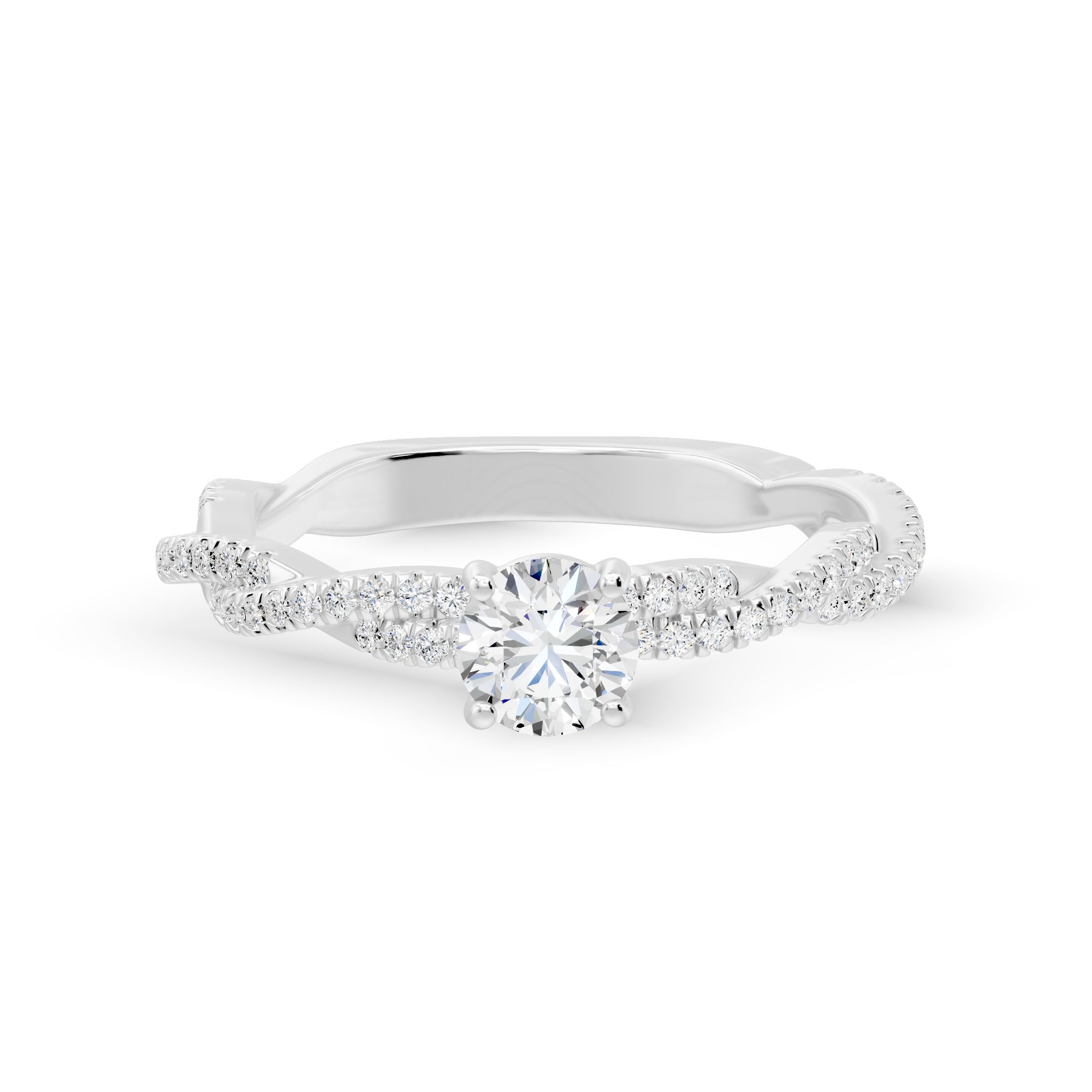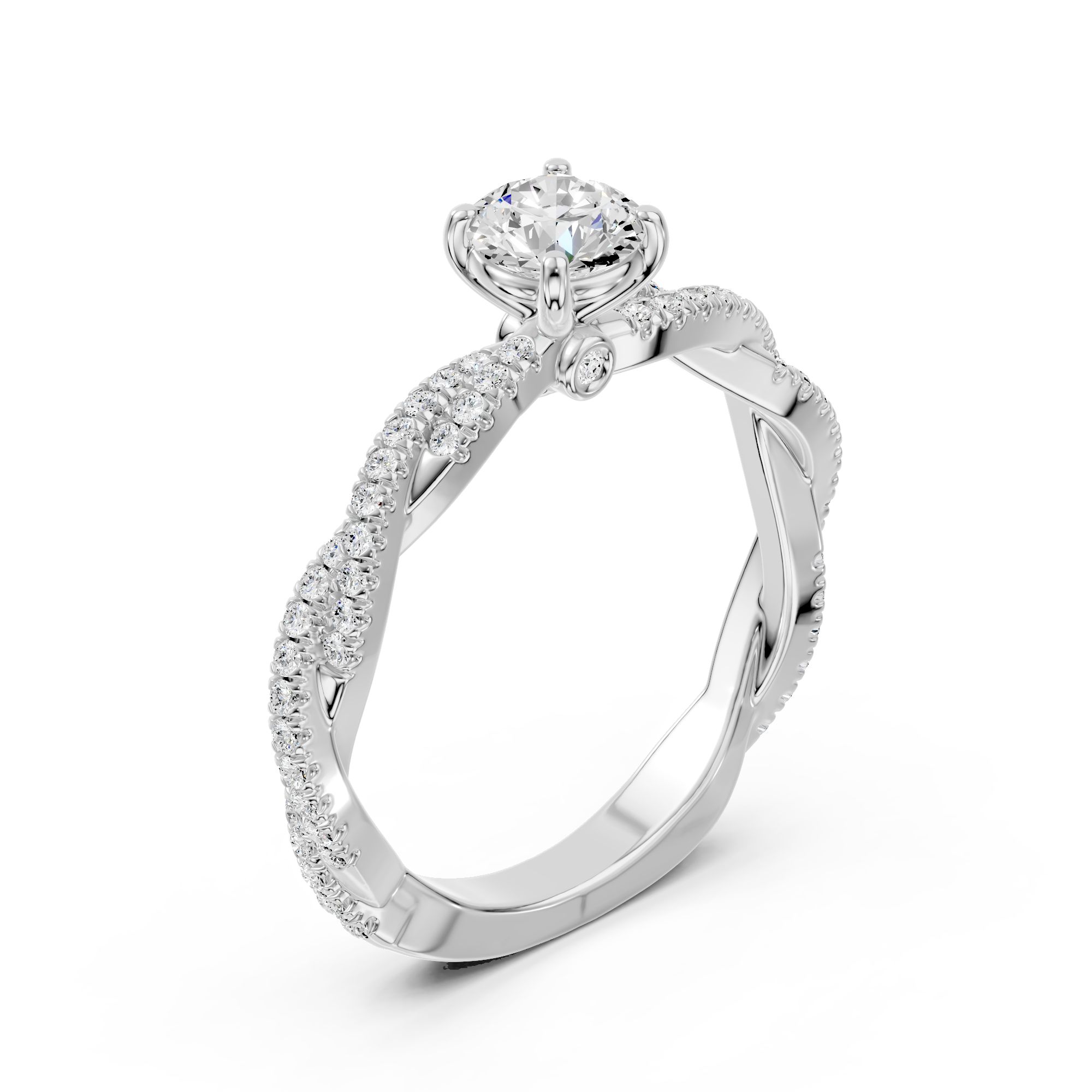 The Solitaire Swirl Ring features a dazzling round-cut diamond at its centre, embraced by a graceful swirl of accent stones. Designed to symbolise eternal love and movement, this engagement ring blends classic brilliance with a contemporary twist   Product Code: RE0079R12DM