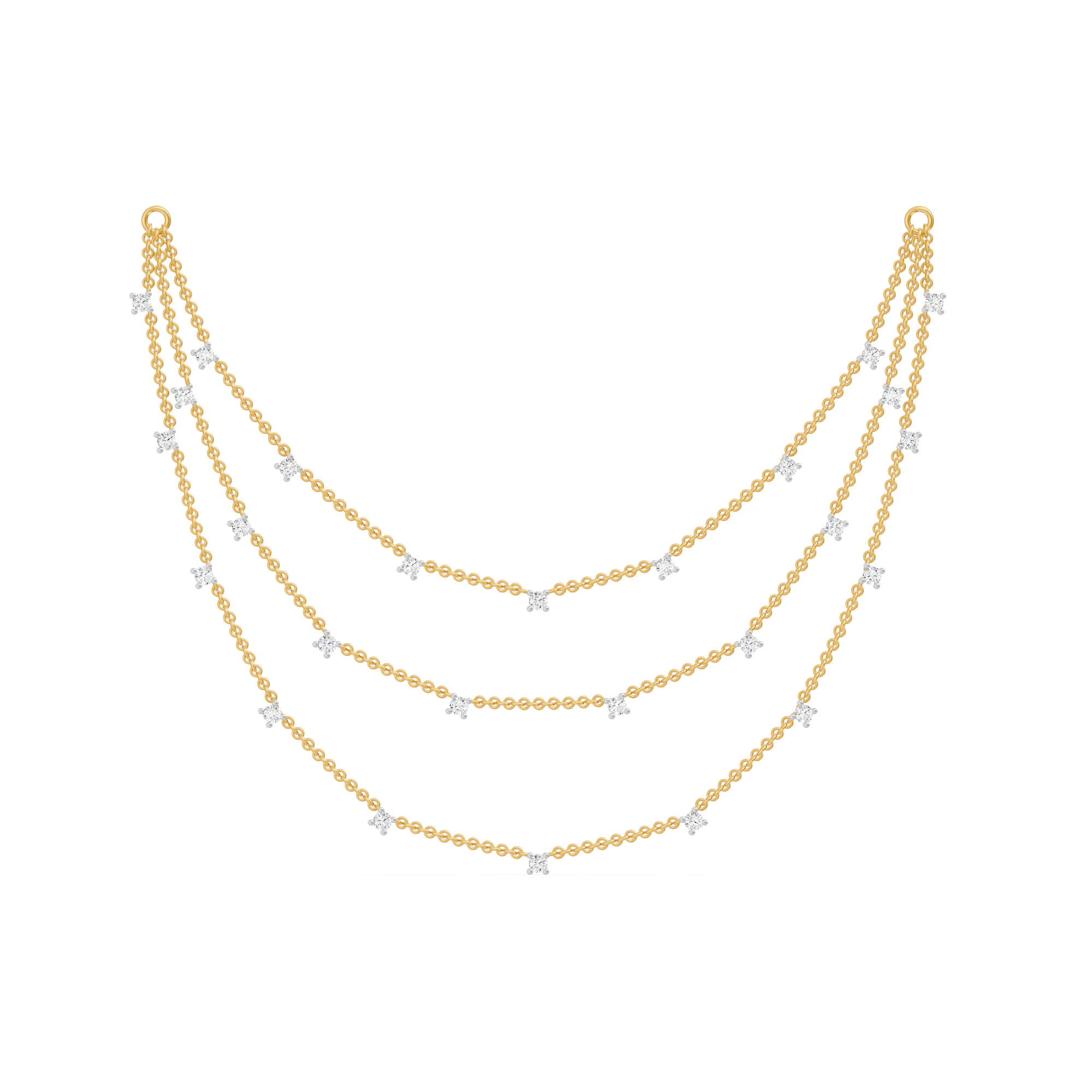 The Sunkissed Vine necklace is crafted in gold and adorned with round diamonds set in a graceful vine-inspired design. With 26 diamonds sparkling along the 18-inch chain, this lightweight everyday piece adds a soft shimmer to any look—perfect for layering or wearing solo.