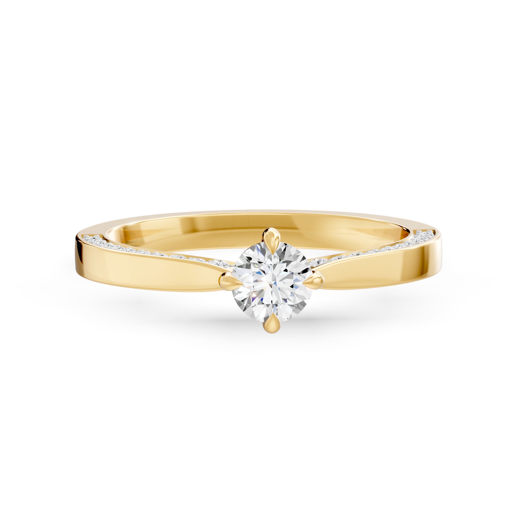 The Classic Diamond Ring showcases a brilliant round-cut centre diamond, perfectly complemented by a band of sparkling accent stones. Timeless in design and rich in elegance, it’s the quintessential engagement ring for those who appreciate enduring beauty.   Product Code: RE0075R12DM